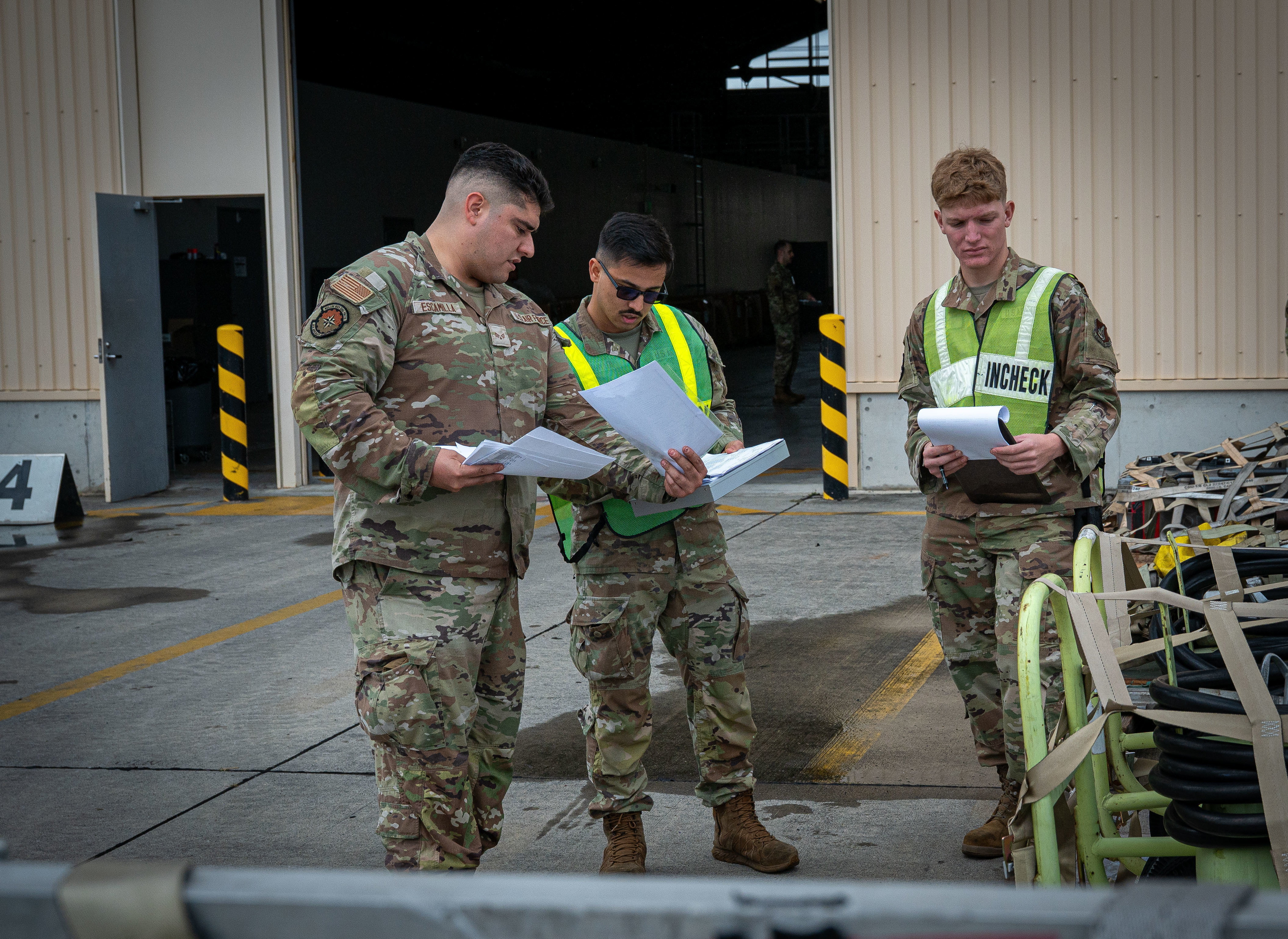 U.S. Air Force Airman 1st Class Diamond King, 374th Surgical Operations Squadron medical technician, and Capt. Joseph Ocampo, 374th Healthcare Operation Squadron urgent care clinical nurse, demonstrates tactical combat casualty care during the Yokota Nurse Symposium at Yokota Air Base, Sept. 25, 2025. Local nurses in Japan visited Yokota to engage in interactive training, including tactical combat casualty care, demonstrations, aircraft tours and hands-on exposure to 374th Medical Group operations. (U.S. Air Force photo by Airman Kayla Karelas)