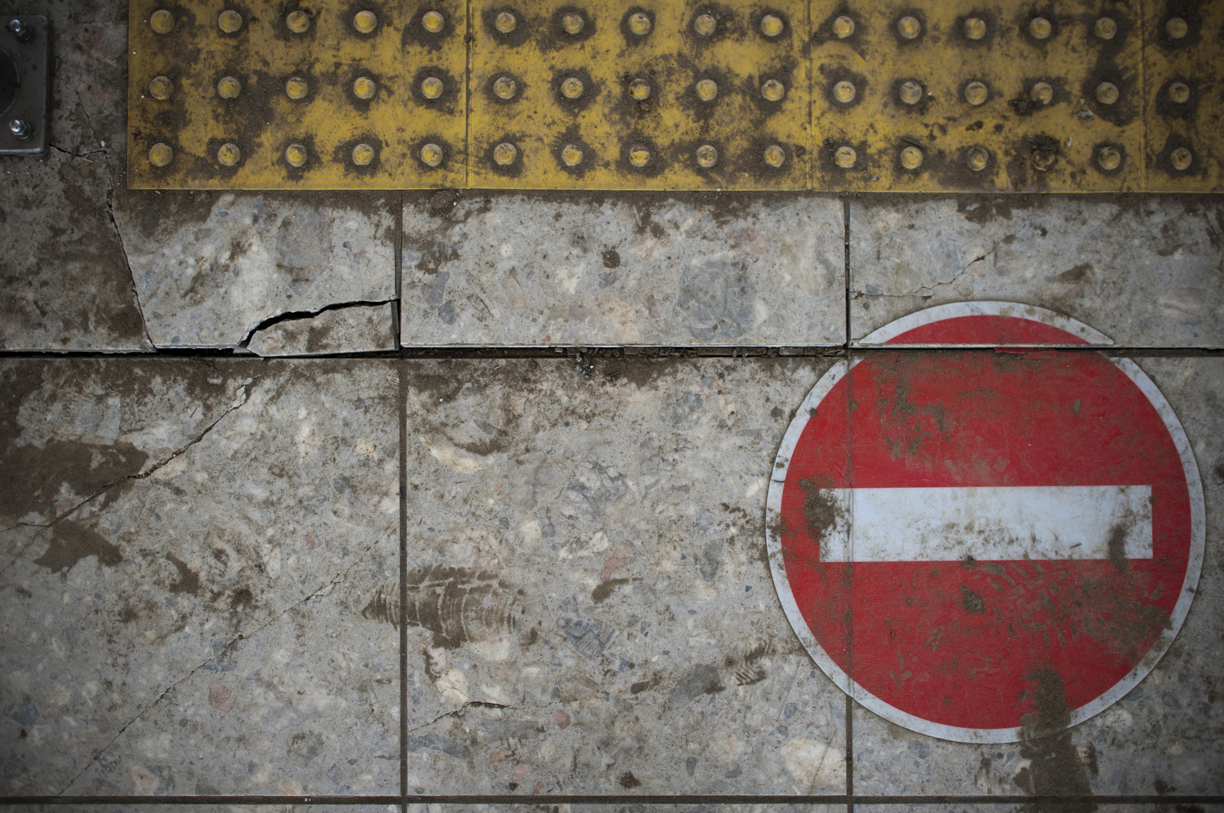 Cracked tiles at the top floor of the passenger terminal at Sendai Airport serve as a reminder of the massive 9.0 earthquake that hit Japan March 11. (U.S. Air Force photo/Staff Sgt. Samuel Morse)