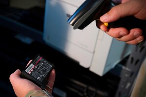 U.S. Air Force Senior Airman Caleb Araujo, 374th Logistics Readiness Squadron fuels journeyman, collects a fuel sample from a refueling vehicle during night operations as part of Exercise Beverly Morning 26-1 at Yokota Air Base, Japan, Oct. 14, 2025. Beverly Morning is a base readiness exercise