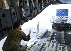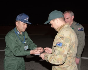 Airmen from the 33rd Rescue Squadron flew two HH-60 helicopters to and from Kessenuma City, March 20, to deliver food, water and medical supplies to displaced people. Kessenuma City, situated along Japan's northeastern coast, received a devastating blow from the tsunami, March 11, losing much of its