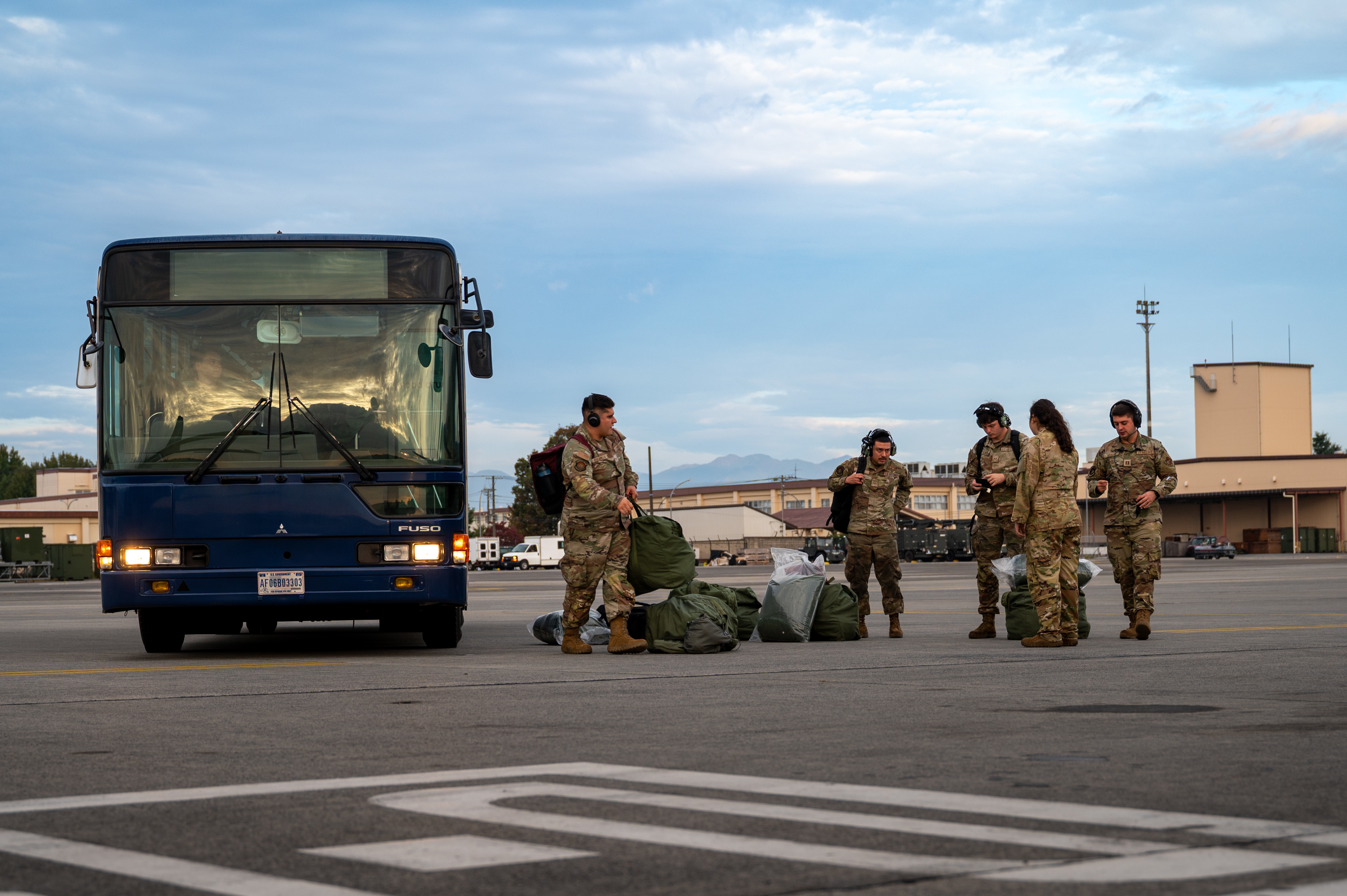 Personnel Deployment Function processes, moves service members during BM 26-1 U.S. Air Force Logo Oct. 18, 2025 BM 26-1:Yokota aircrew pass through PDF lines U.S. Air Force Airman 1st Class Aaron Martinez, 374th Force Support Squadron customer support technician, speaks with aircrew members before a personnel deployment function line briefing as part of exercise Beverly Morning 26-1 at Yokota Air Base, Japan, Oct. 15, 2025. Exercise BM is a biannual base readiness exercise designed to prepare Airmen for real-world responses as they engage in a wide range of scenarios. Through simulated deployment, Airmen are able to sharpen their skills and test procedures, ensuring members of Yokota are ready for potential threat or crisis. (U.S. Air Force photo by Senior Airman Samantha White) Details Download Bm 26-1 PDF Lines U.S. Air Force Airman 1st Class Kimberly Loma Ramires, 374th Force Support Squadron personnel deployment function line personnelist, processes simulated deploying personnel as a part of exercise Beverly Morning 26-1 at Yokota Air Base, Japan, Oct. 16, 2025. BM is a base readiness exercise series designed to sharpen Yokota Air Base’s ability to maneuver and sustain the joint force. (U.S. Air Force photo by Senior Airman Alexzandra Gracey) Details Download Bm 26-1 PDF Lines U.S. Air Force Airman 1st Class Andy Rios-Aguilar, 374th Comptroller Squadron financial operations technician, briefs simulated deploying personnel as a part of exercise Beverly Morning 26-1 at Yokota Air Base, Japan, Oct. 16, 2025. BM is a base readiness exercise series designed to sharpen Yokota Air Base’s ability to maneuver and sustain the joint force. (U.S. Air Force photo by Senior Airman Alexzandra Gracey) Details Download BM 26-1: 374 AW simulates rapid troop deployment functions U.S. Air Force Airmen assigned to the 374th Airlift Wing exit a shuttle bus to depart for a simulated deployment as part of exercise Beverly Morning 26-1 at Yokota Air Base, Japan, Oct. 18, 2025. Exercise Beverly Morning is a biannual base readiness exercise designed to prepare Airmen for real-world responses as they engage in a wide range of scenarios. Through the simulated deployment, Airmen are able to sharpen their skills and test procedures, ensuring members of Yokota are ready for any potential threat or crisis. (U.S. Air Force photo by Airman 1st Class David S. Calcote) Details Download BM 26-1: 374 AW simulates rapid troop deployment functions U.S. Air Force Airmen assigned to the 374th Airlift Wing exit a shuttle bus to depart for a simulated deployment as part of exercise Beverly Morning 26-1 at Yokota Air Base, Japan, Oct. 18, 2025. Exercise Beverly Morning is a biannual base readiness exercise designed to prepare Airmen for real-world responses as they engage in a wide range of scenarios. Through the simulated deployment, Airmen are able to sharpen their skills and test procedures, ensuring members of Yokota are ready for any potential threat or crisis. (U.S. Air Force photo by Airman 1st Class David S. Calcote) Details Download The 374th Force Support Squadron in tandem with numerous base agencies gathered to process and deploy nearly 300 service members during the personnel deployment function for exercise Beverly Morning 26-1 at Yokota Air Base, Japan.
